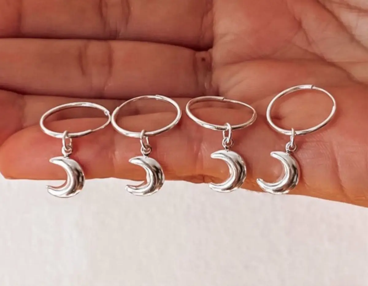 Argollas de 1,5 cm con dije de luna: un diseño encantador que evoca misterio y feminidad, ideal para llevar de día o de noche. (Precio por el par)